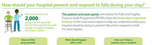 The patient and carer panel, who advise the Falls and Fragility Fracture Audit Programme (FFFAP), chose the three most important findings of the most recent report to help you understand what your hospital should be doing to prevent falls and how to respond to a fall if it does happen.