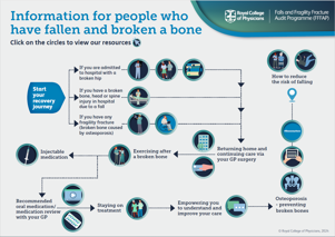 This interactive resource aims to bring together resources across various patient pathways and have all useful information in one place to help support patients and carers involved in the recovery journey after suffering a broken bone from a fall.