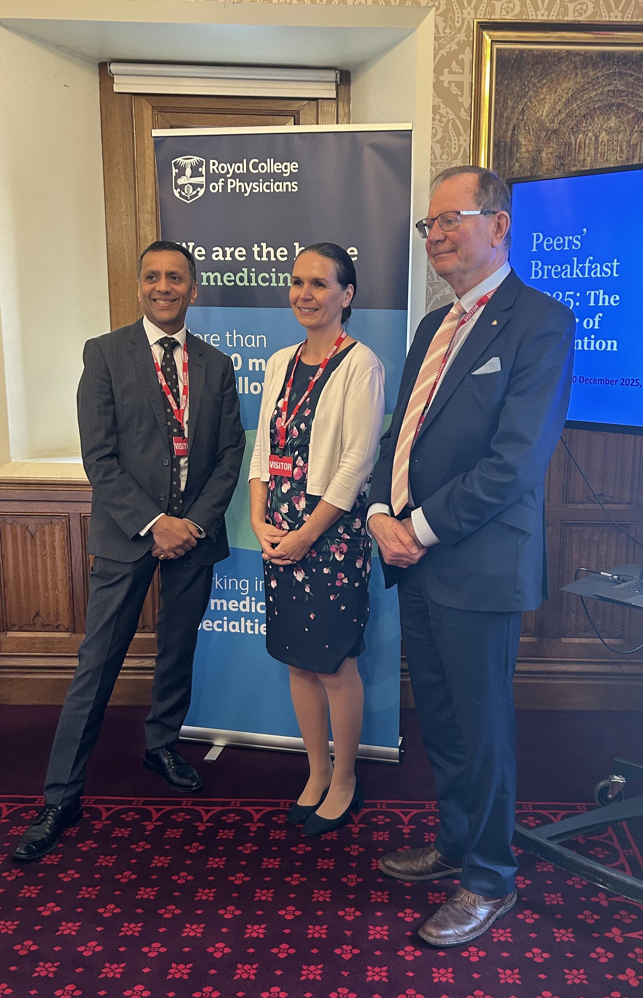 RCP special advisers at the event. Left to right: Dr Sanjay Agrawal, Dr Kath McCullough and Professor Sir Stephen Holgate.