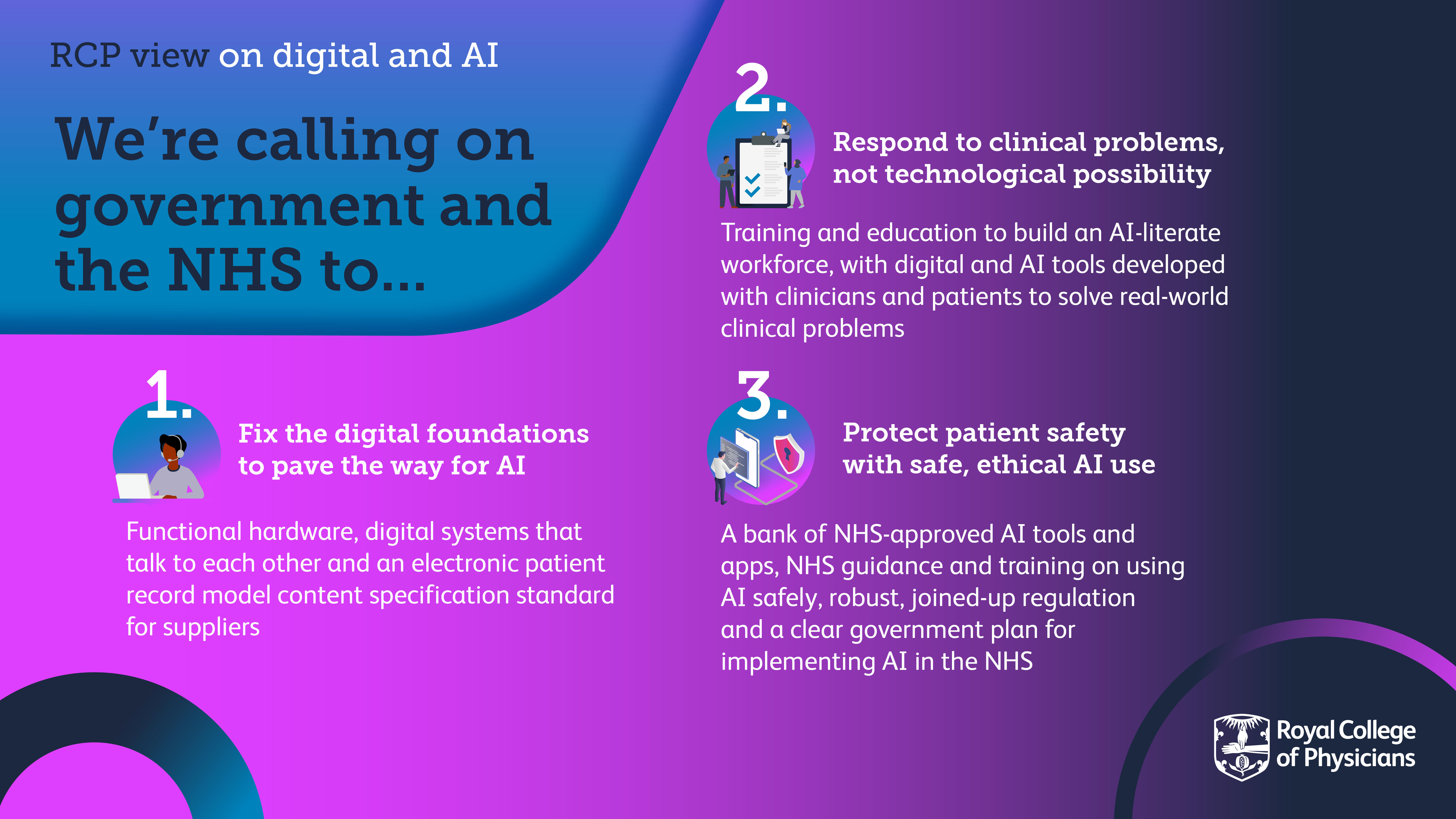 - RCP view on digital and AI - calls to government and the NHS infographic
